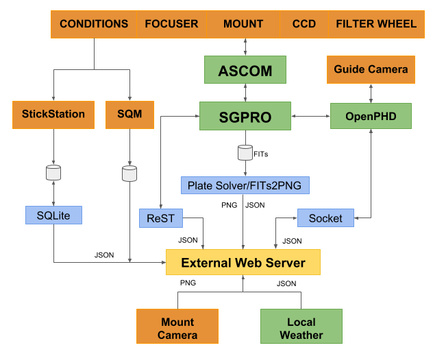 This project aims to show the state and image capture of the current or last astroimaging session. The data capture and processing was performed by GingerGeeks and the web based front end was created in cooperation with Neil Munday.